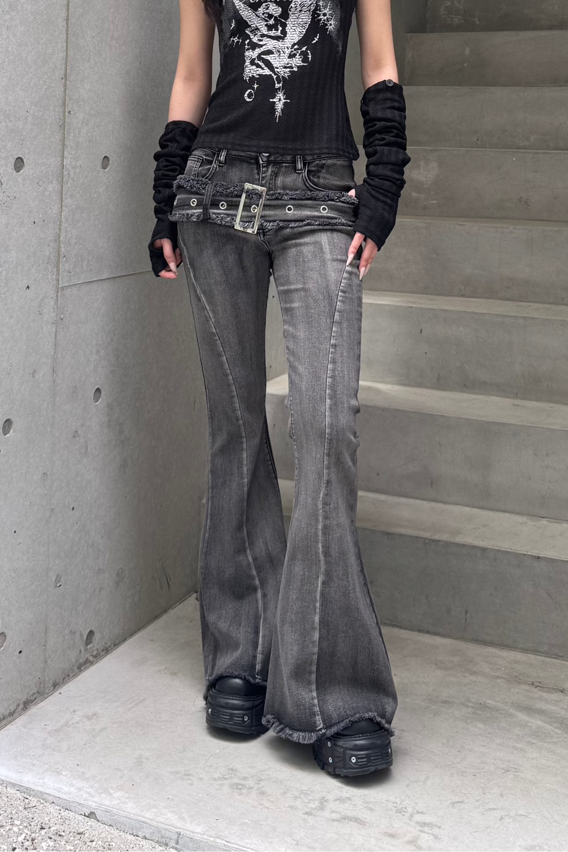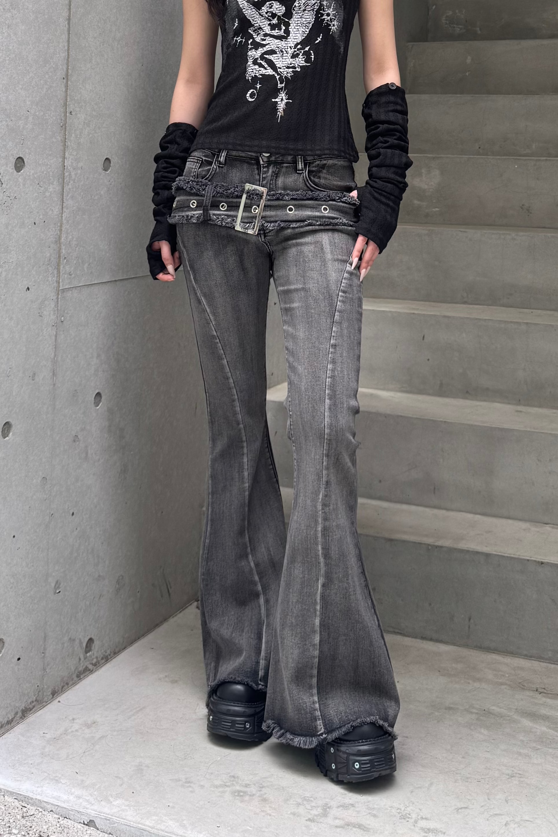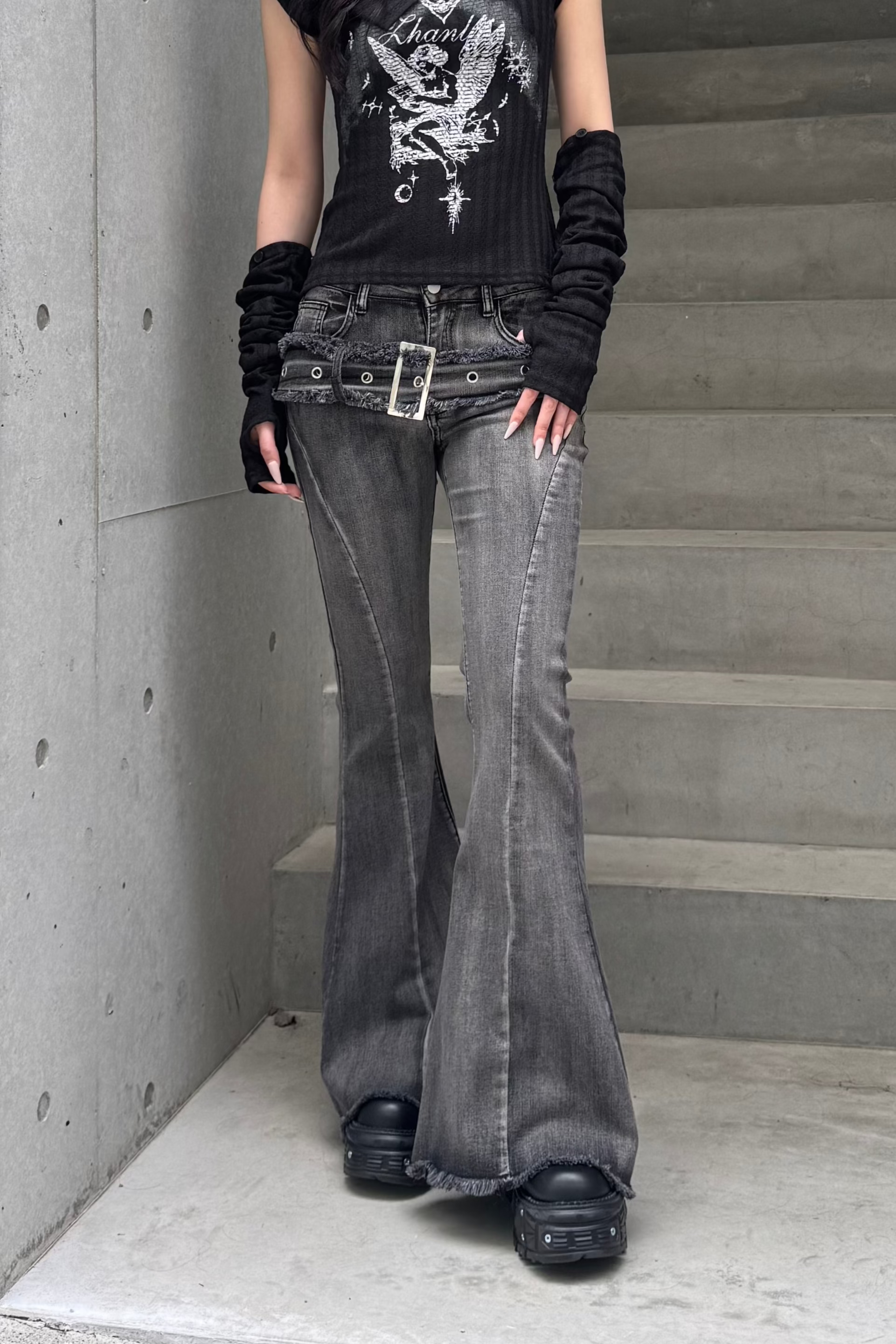 ベルトデザインが特徴的なローライズフレアデニム✨