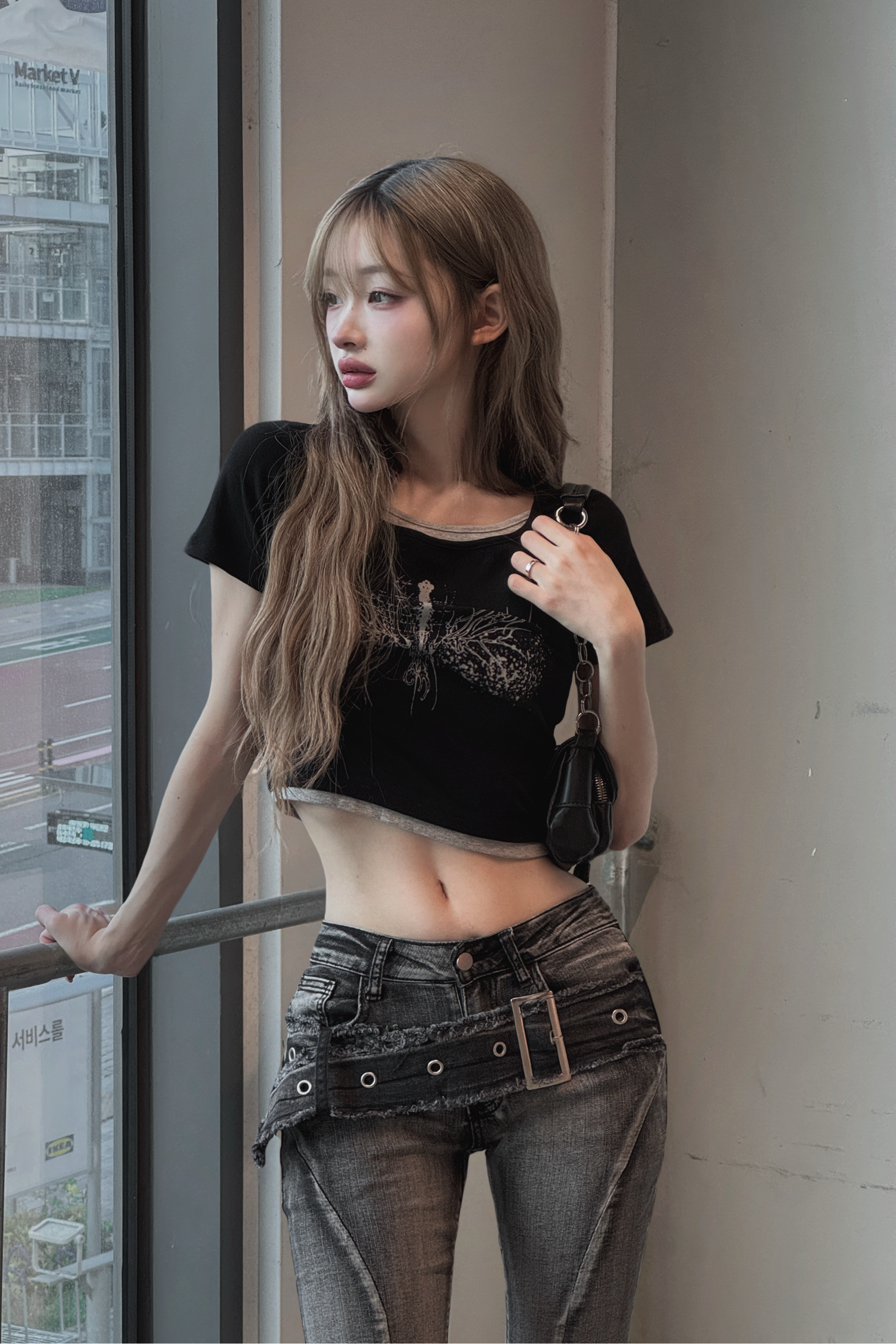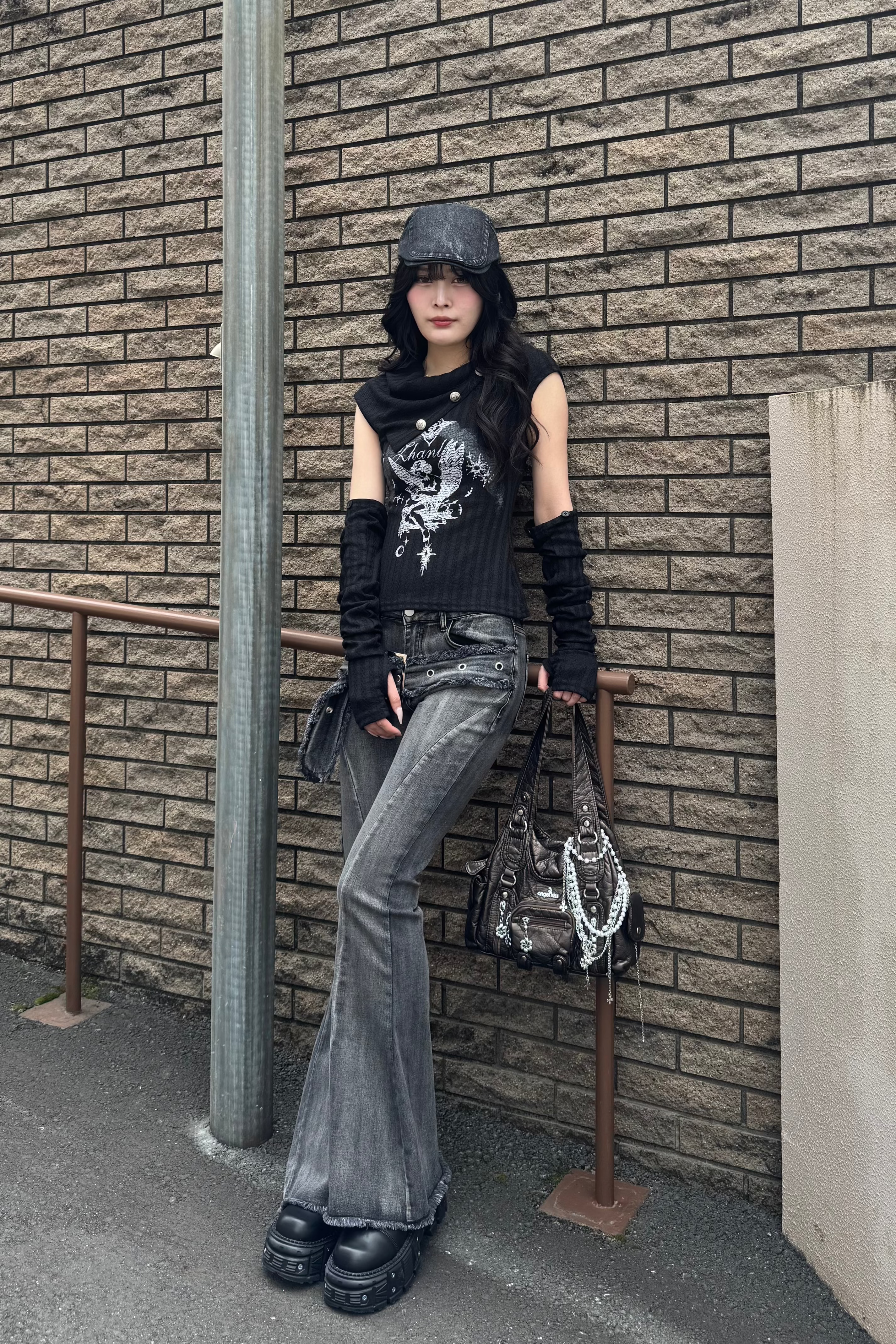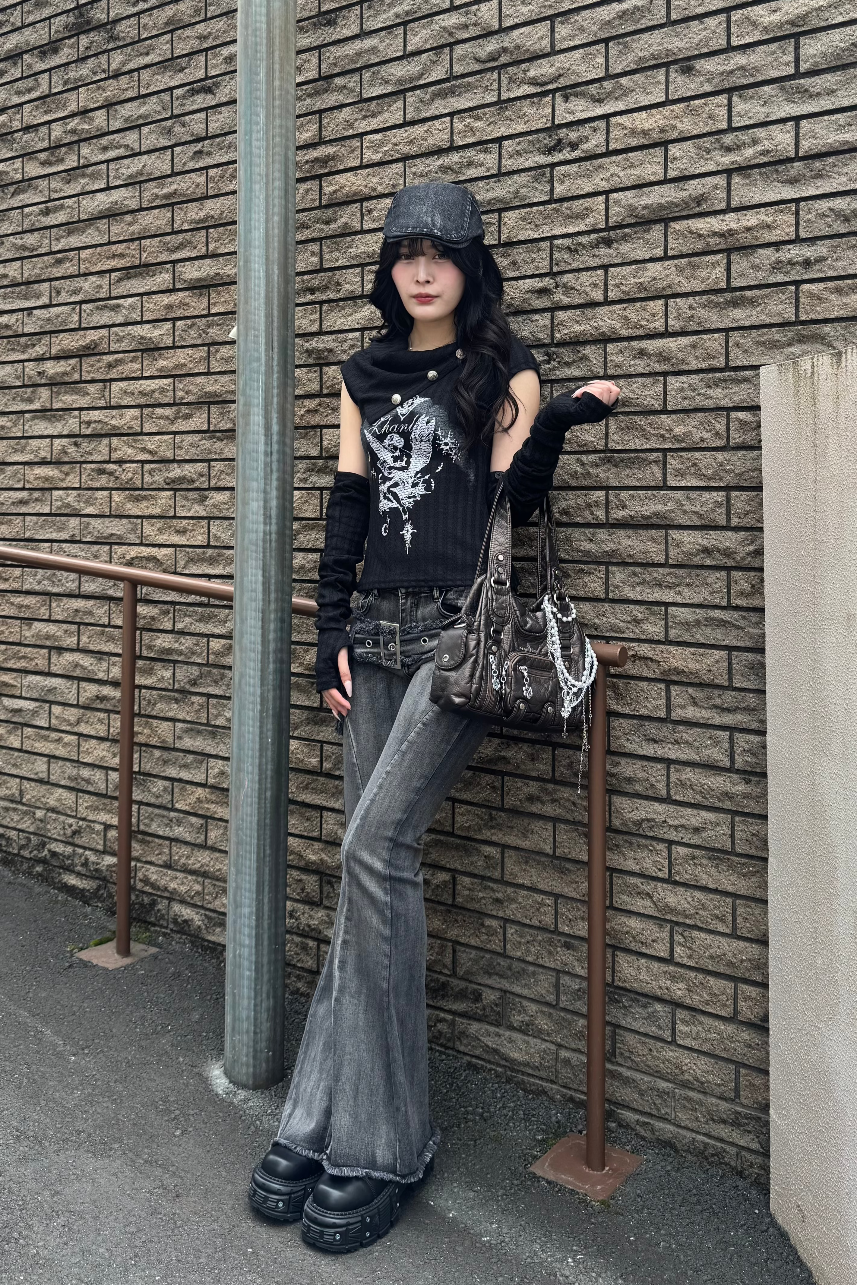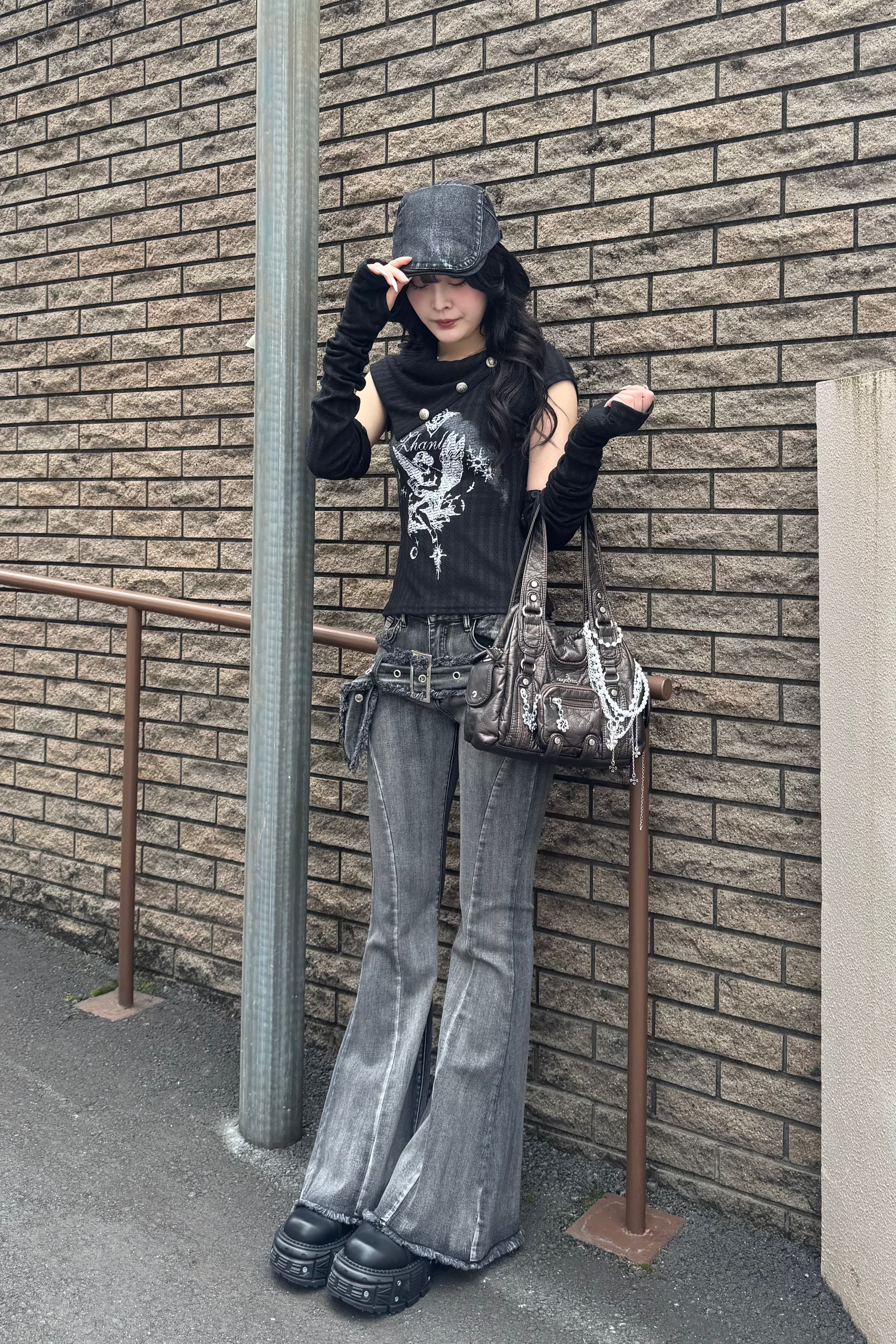 ベルトデザインが特徴的なローライズフレアデニム✨