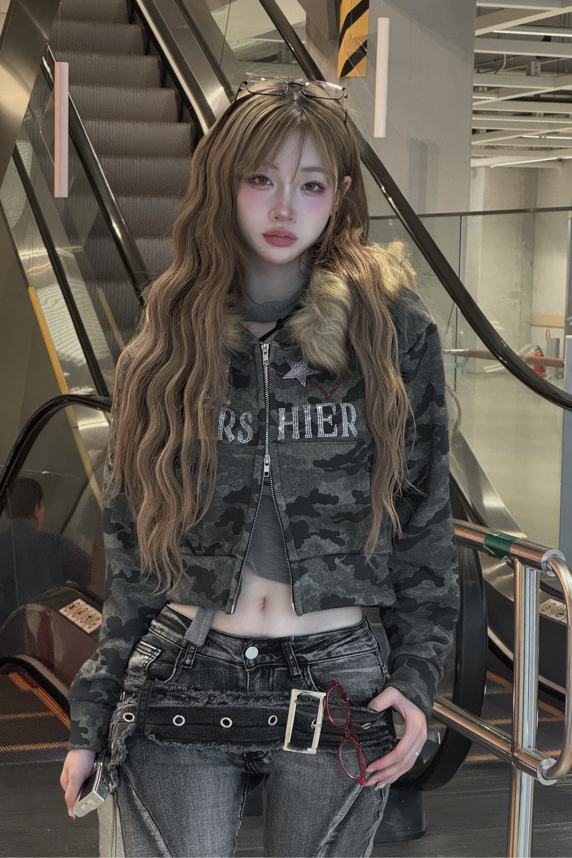 カモフラージュダブルジップクロップドパーカー ZC20777