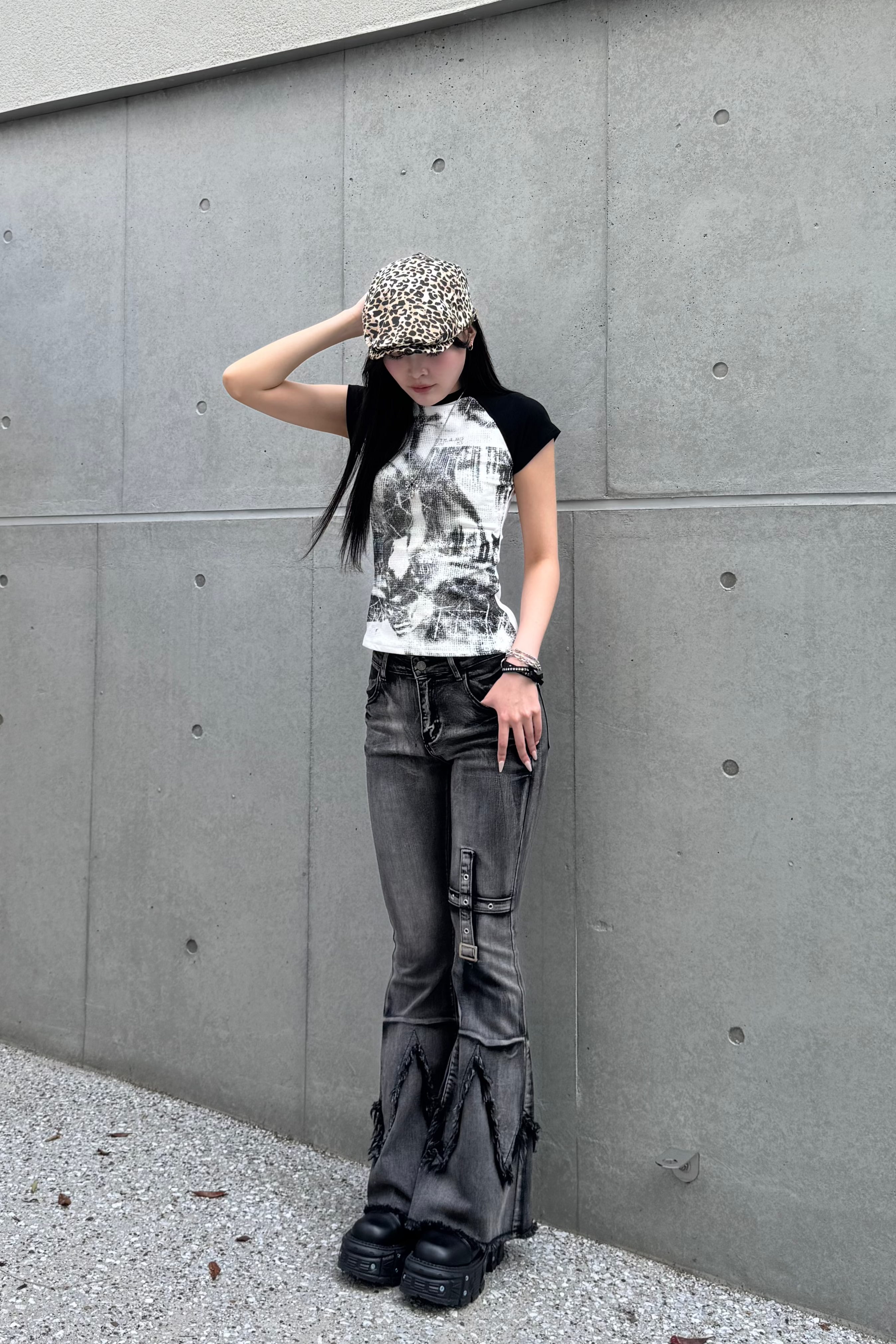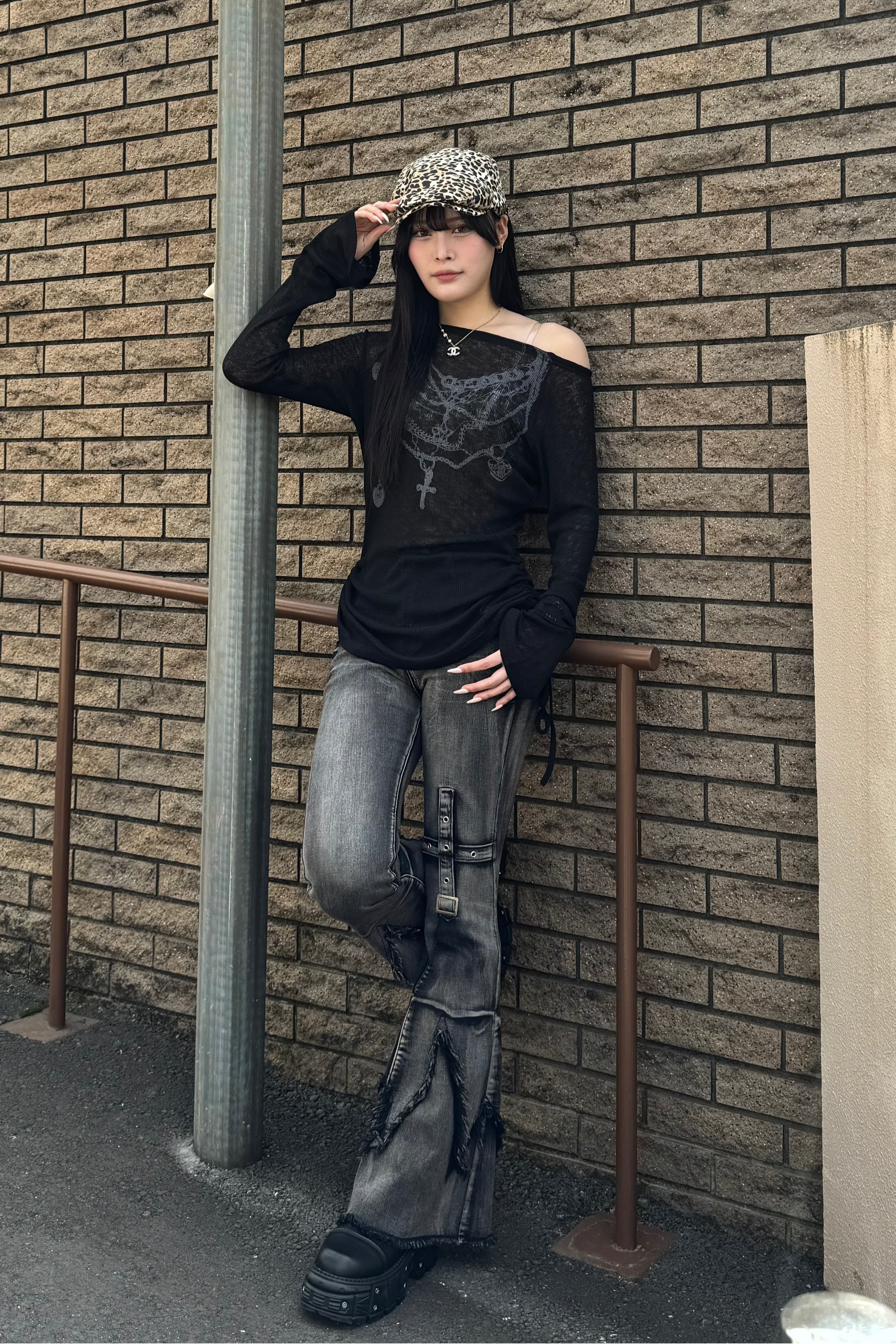 また、体のラインが出る細身トップスと合わせるとさらにスタイルアップになります🖤