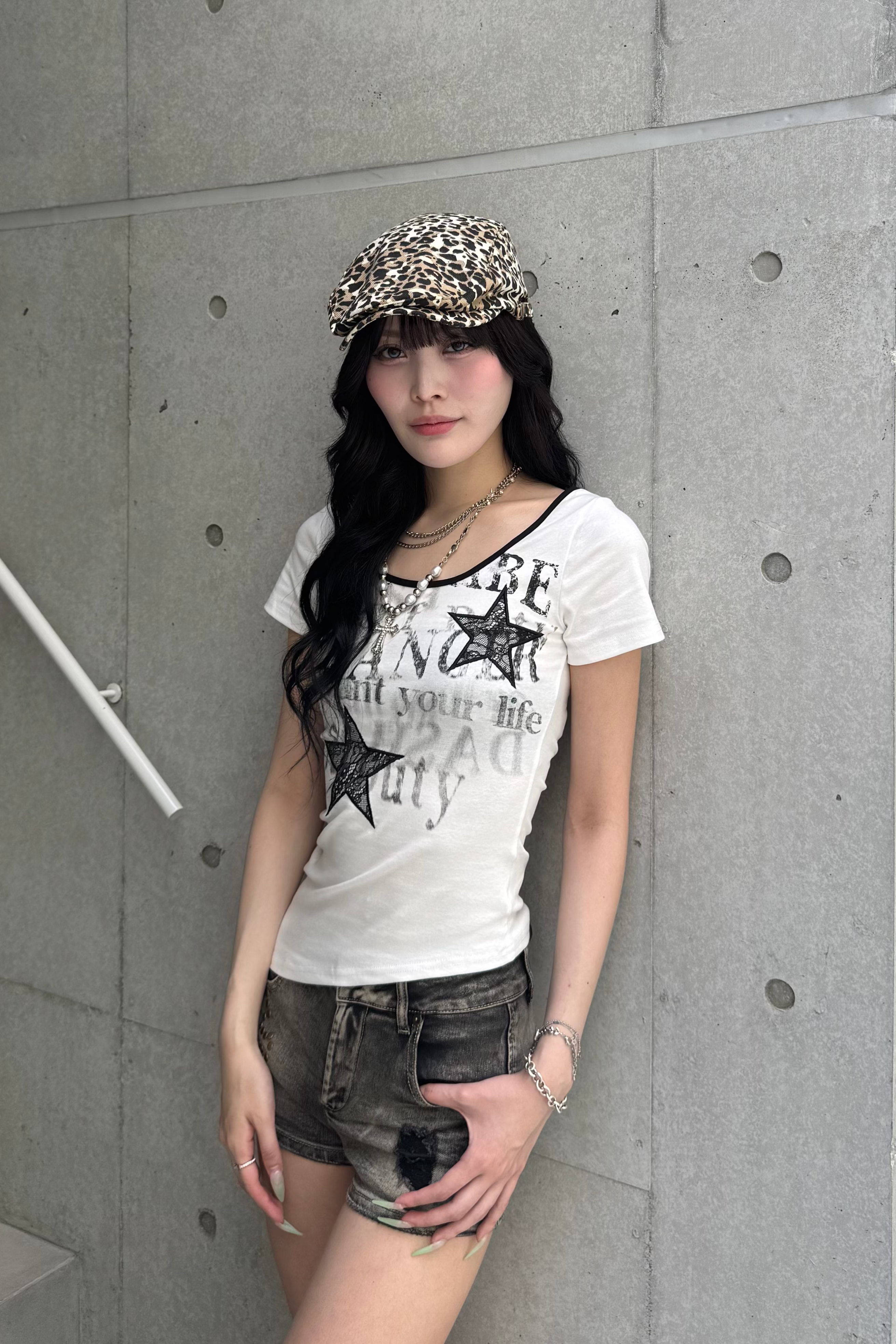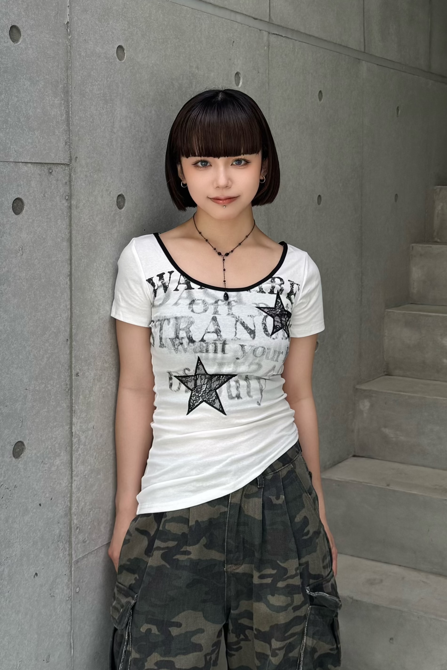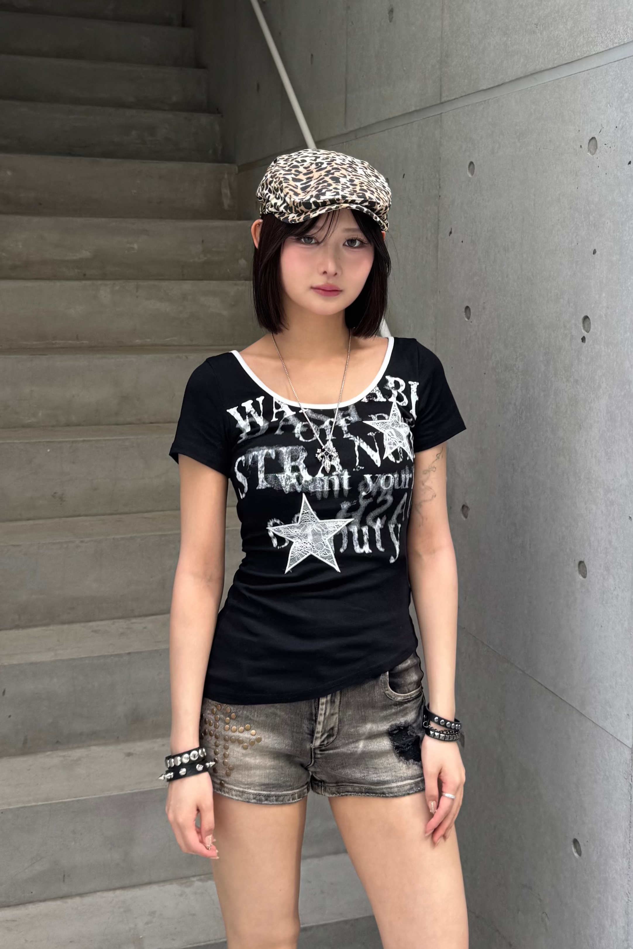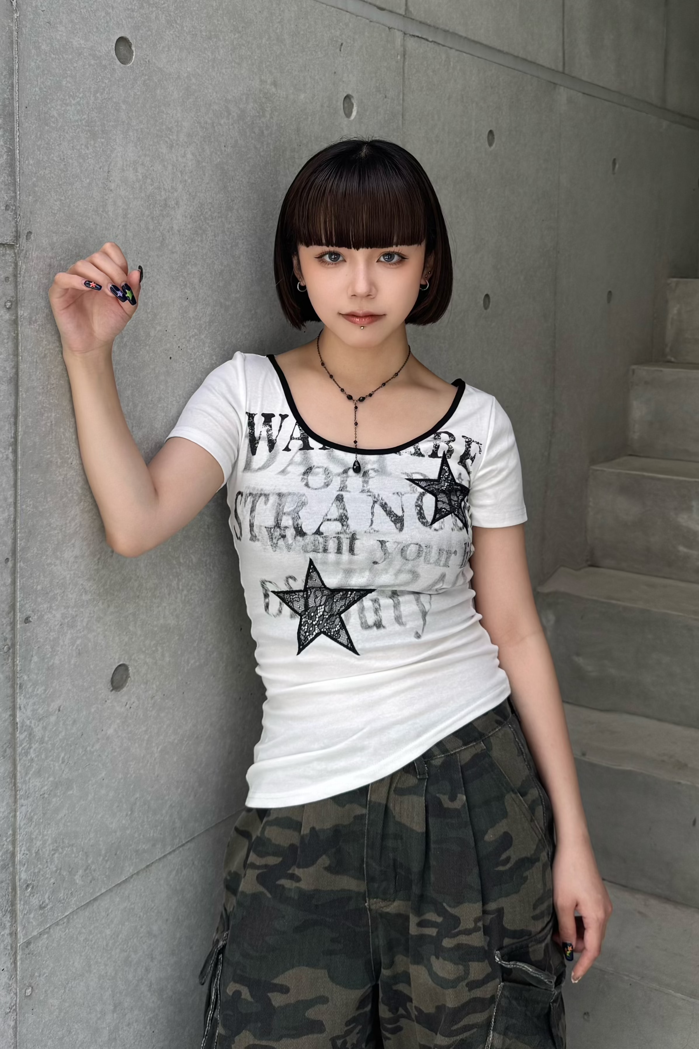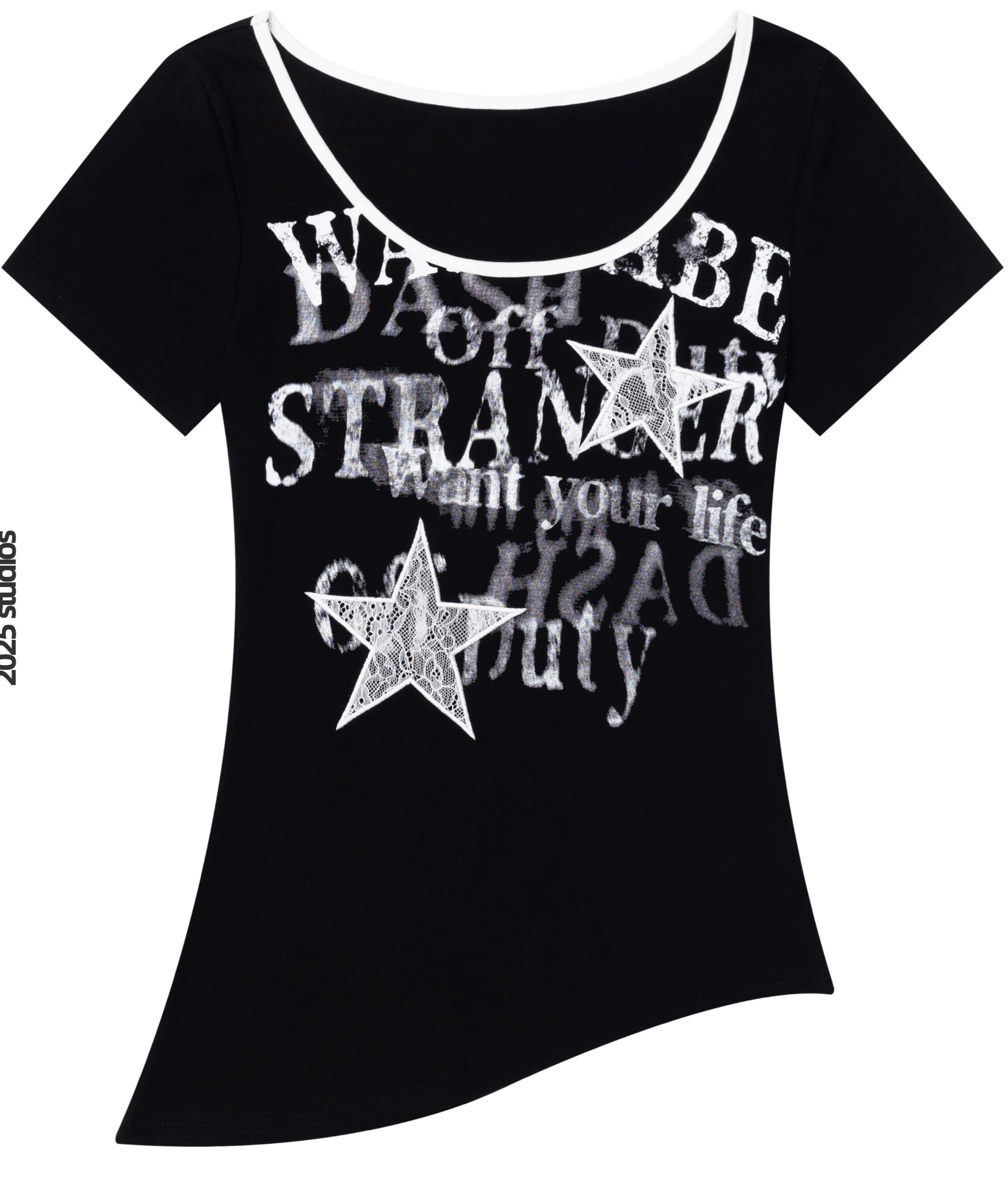 今年人気のスターデザインと文字のレタリングがロック感満載のY2KTシャツ!