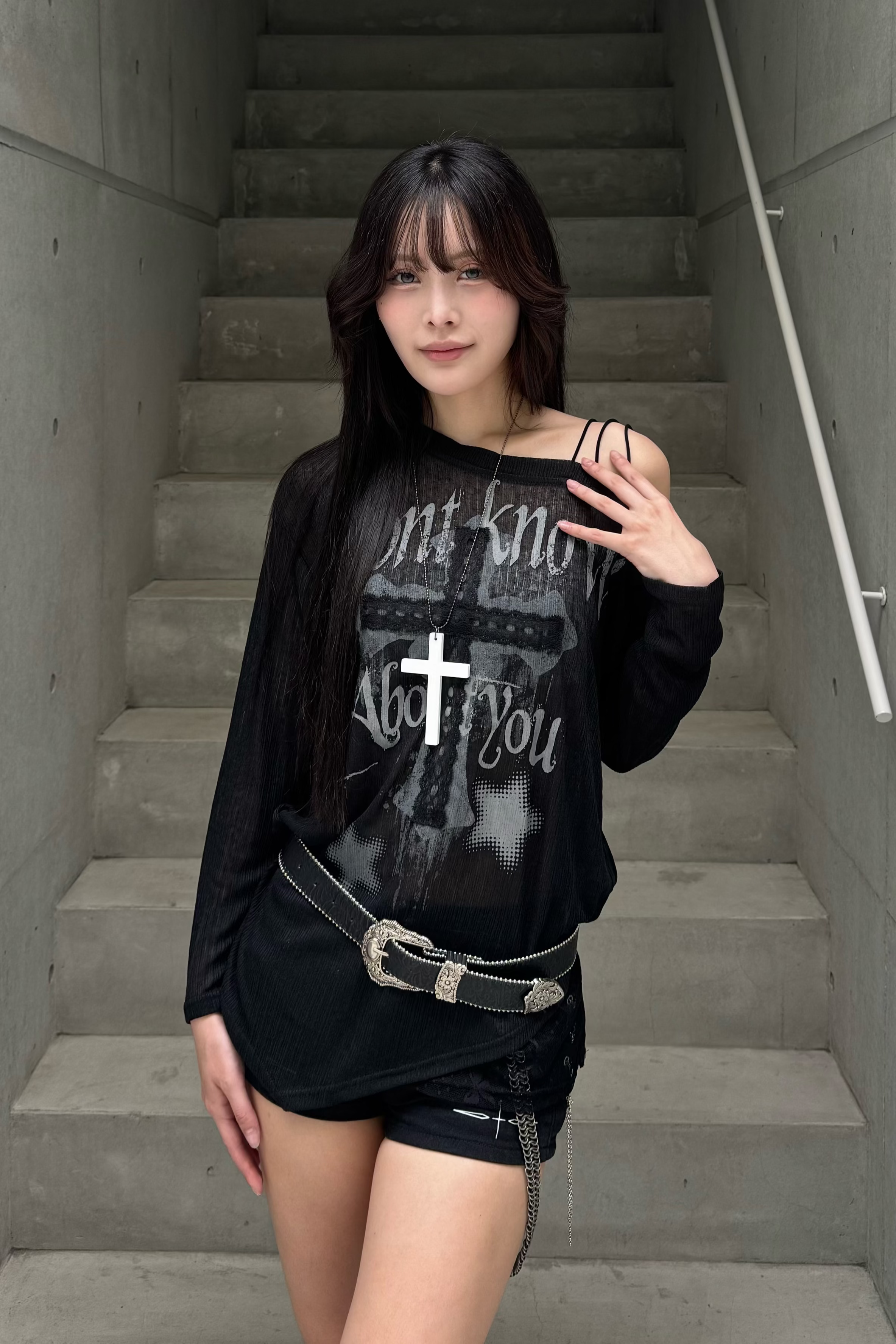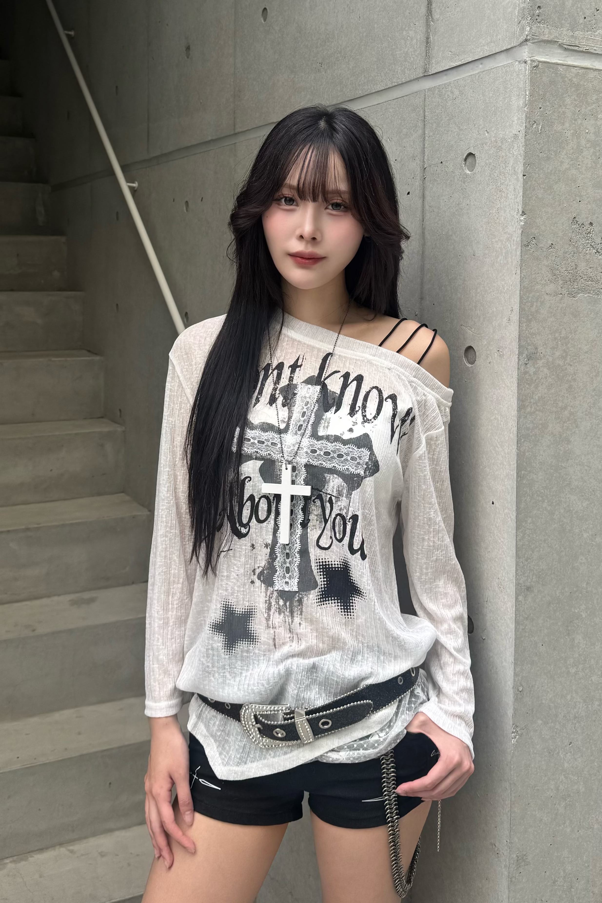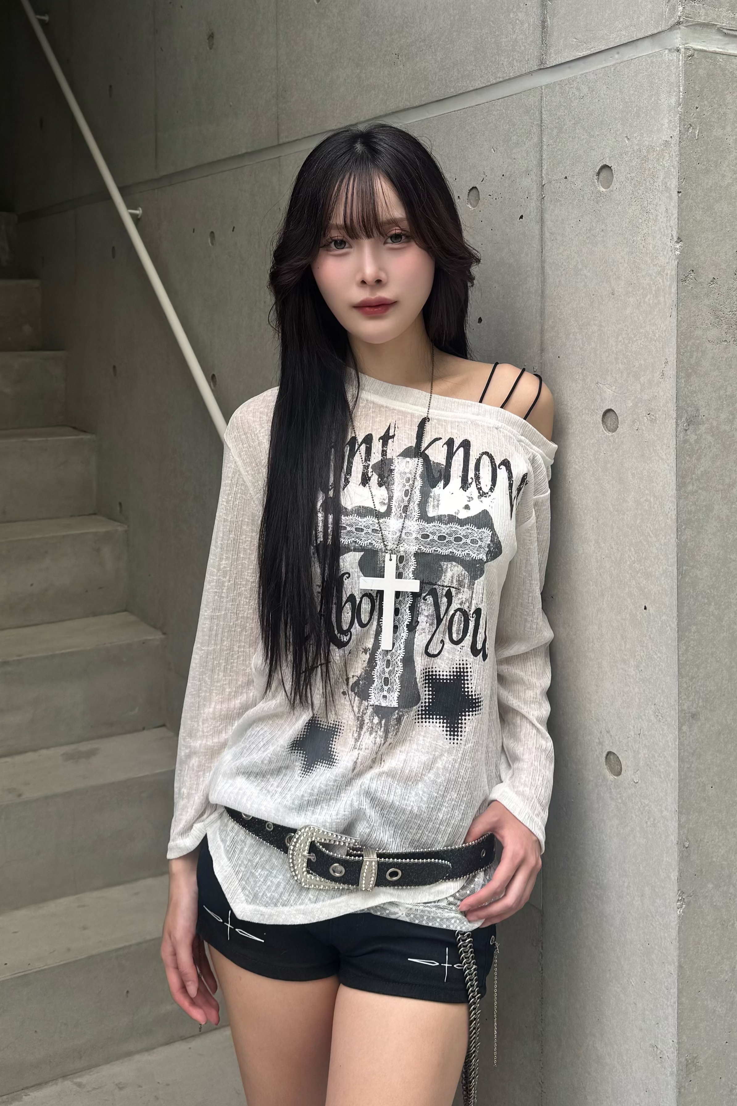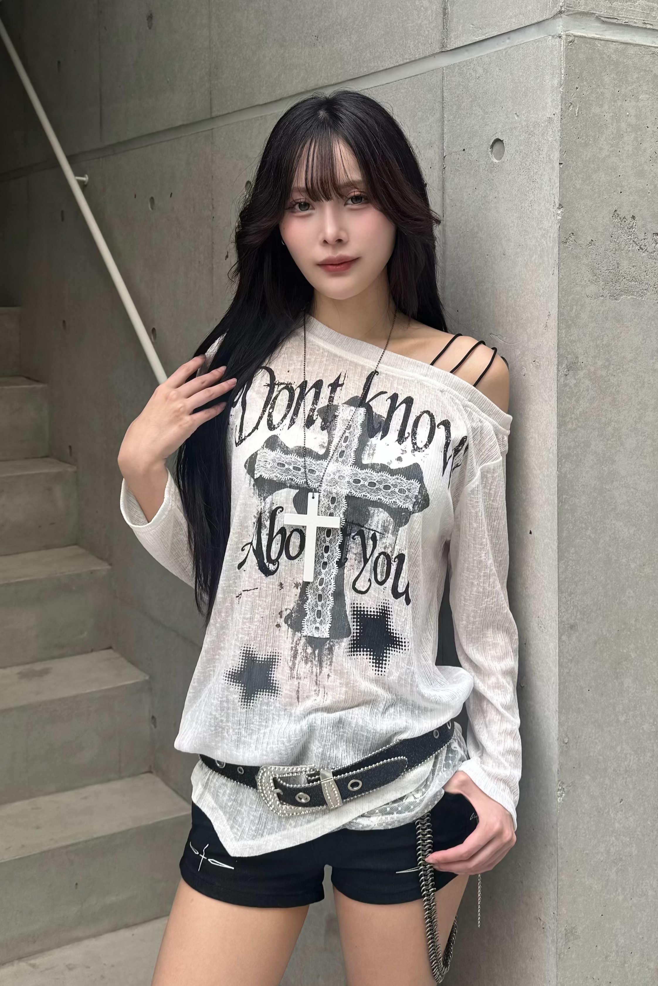 アシンメトリーな胸元で片側の肩が落ちるワンショルダーデザインがラフさと抜け感を演出